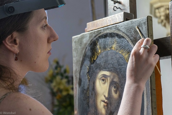 Conservatrice-restauratrice de peintures, œuvre à la préservation de vos biens culturels, les tableaux, les peintures sur bois, les œuvres sur cuivre voire sur marbre ainsi que tout décor peint ou fresque. La restauration d’une peinture peut se résumer à la reprise d’une déchirure, d’un trou sur votre tableau voire d’un simple décrassage de surface.